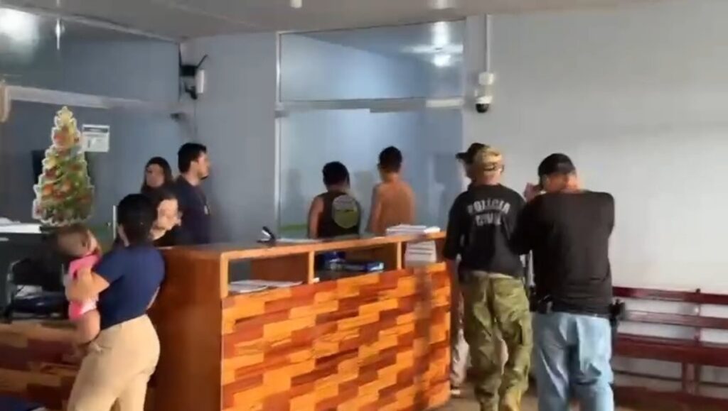 Nas imagens, é possível ver quando um dos suspeitos avança em direção aos jornalistas e desfere um chute contra a câmera, numa tentativa clara de interromper a gravação. A ação ocorreu enquanto os policiais conduziam os presos para o interior da delegacia.